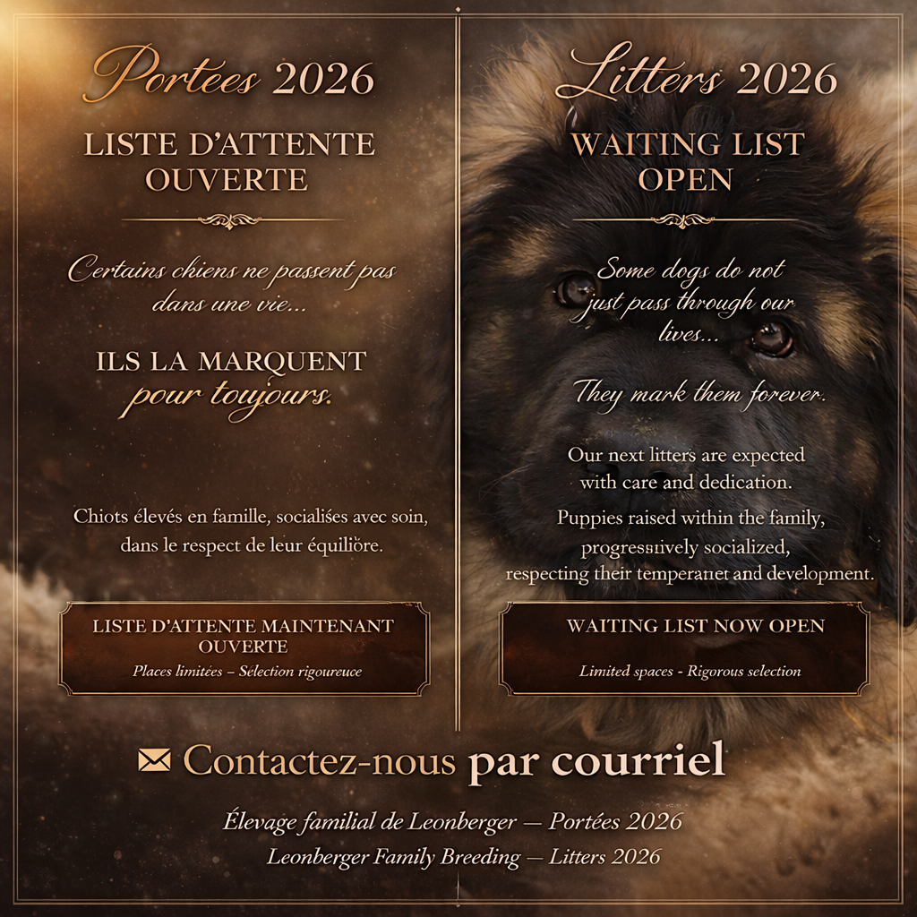 Réservez votre chiot dès maintenant! Nous attendons des portées de Leonberger dans les mois à venir.